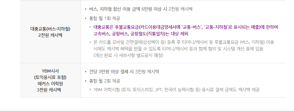 ⑧ 버스, 지하철 이용금액 5만 원 이상시 2천 원 혜택
