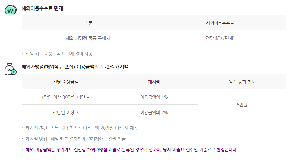 ② 해외이용수수료 건당 0.5불 면제 (실적 상관없음)