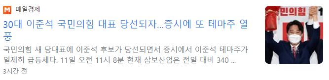 이준석 관련주 및 테마주 총정리