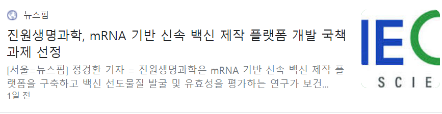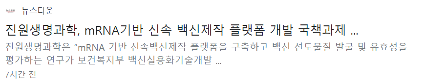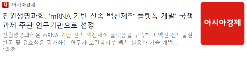 진원생명과학 강세, mRNA 국책연구 수행 호재