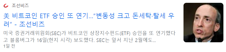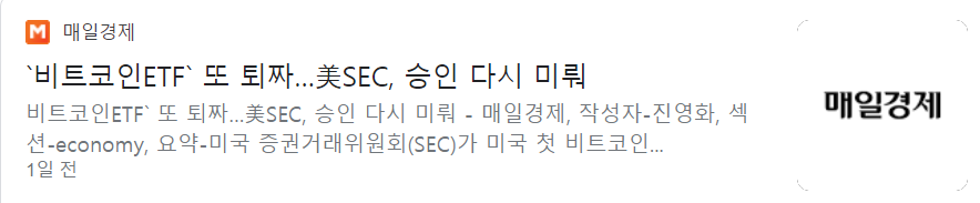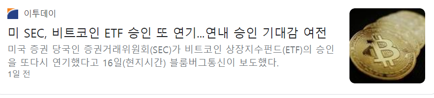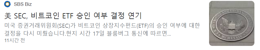 비트코인 ETF와 관련해 승인 결정을 연기했다고 발표