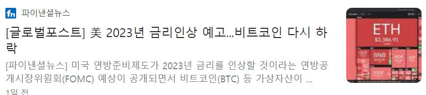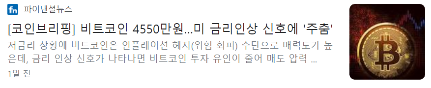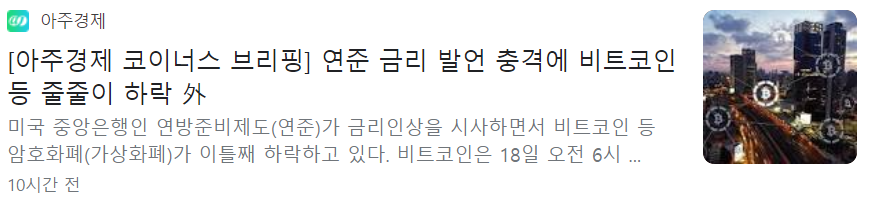 지난 16일(현지시간) 연준은 연방공개시장위원회(FOMC) 정례회의 기준금리를 현재 0.00~0.25%로 동결한다고 밝혔다. 실제 미국 연준이 연방공개시장위원회(FOMC)에서 조기 금리 인상을 시사하면서 추가 하락에 대한 우려감도 커지고 있다. FOMC는 미국 금리가 2023년 두 차례, 0.5% 포인트 상승할 것이라고 전망했다.