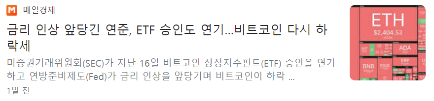 비트코인시세 4400만원대 하락세, 금리인상 ETF연기
