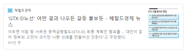 저 역시 지역주민으로 GTX D노선이 강남 직결되기 간절히 바라지만, 현재의 상황으로 봤을 때는 쉽지 않을것으로 판단됩니다. 늘 발목을 잡았던 예산과 사업성, 정부의 현재 움직임으로 봤을때는 인천에서 요구한 y자 노선은 불구하고 하남에서 김포까지의 원안 확정도 어렵지 않을까 싶습니다.