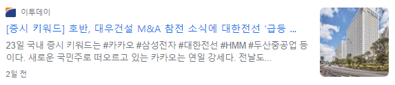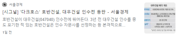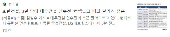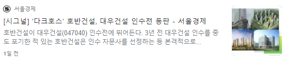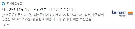 대한전선 주가, 호반 대우건설 인수 전 참여소식 강세