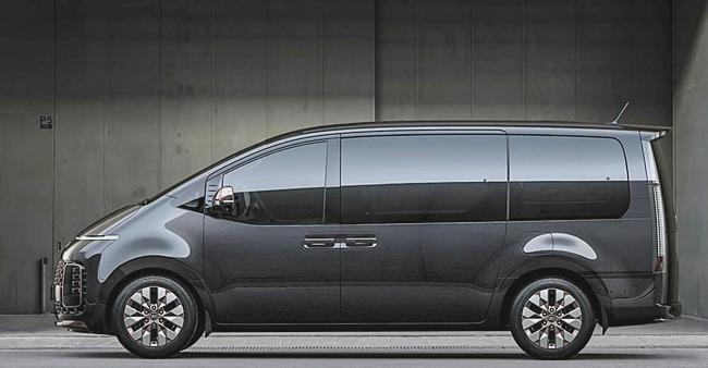 전고는 1990mm, 전폭은 1995mm, 전장은 5255mm 내부는 널찍하고 시원한 공간을 확보하였습니다. 전면부는 얇고 긴 모던한 전면부 램프와 주간 주행 등이 있으며, 널찍한 라디에이터 그릴이 자리 잡고 있습니다. 측면부는 벨트라인은 최대한 낮춰서 측면의 윈도를 최대한 넓게 확보하여 파노라마 형태의 윈도로 배치하였습니다. 후면부의 경우 길고 심플하면서도 모던한 수직형 램프와 넓은 뒷유리를 배치하여 내부에서 답답하지 않고 시원한 개방감을 높이고 있습니다. 전체적인 모습은 미래지향적 디자인이며 비공식 애플 카의 느낌도 있는 새로운 승합차의 모습이며, 기존에 스타렉스가 갖고 있던 승합차의 개념에서 스타리아는 다른 버전의 승합차이지만 승합차 같지 않은 고급진 느낌이라 더욱 관심이 높아진 듯합니다.