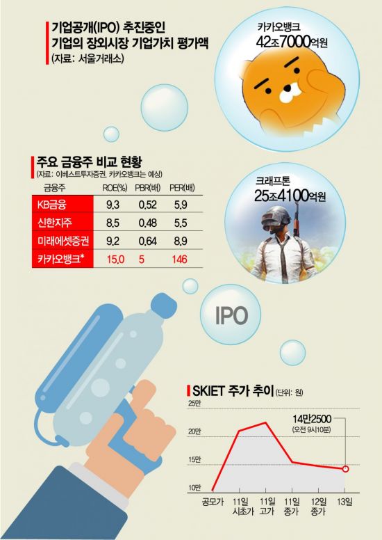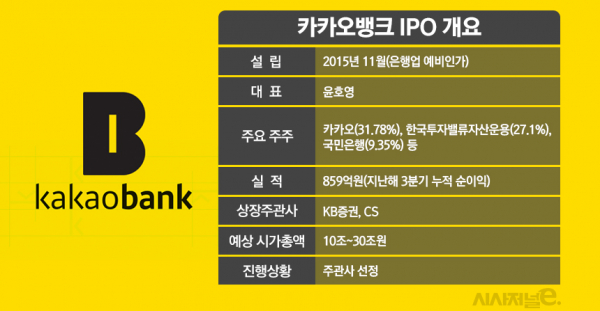 증권 연구원에 따르면 "카카오 뱅크의 기업 가치는 향후 금융 플랫폼으로써 지위 확보 여부와 차별화된 상품을 통한 고객 기반 락인(Lock-in), 총자산순이익률(ROA) 개선 등에 따라 가변적이다"라며 "현재 단계에서 카카오뱅크의 IPO 가치를 예단하는 것은 다소 이른 것으로 판단된다"라고 진단했다. 지난 2017년 인터넷 전문은행으로 출범한 카카오 뱅크는 지난달 15일 상장 예비심사 신청서를 한국거래소에 제출하며 공식적으로 상장 절차에 돌입한 상태다. 6월 안에 심사 결과가 나오면, 오는 7월에는 코스피 시장에 상장할 수 있을 것으로 전망된다.