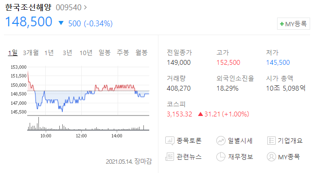오랜 시간 침체기를 겪었던 조선업이 연이어 수주 낭보를 올리면서 국내 조선산업이 슈퍼사이클 진입하고 있다는 기대감을 갖게 했다. 하지만 업계 분위기는 사뭇 다르다. 연이은 수주로 분위기는 좋지만, 수주가 실제로 실적에 반영되는 시기와는 시차 차이가 크고, 중국의 물량 공세로 국내 조선업을 위협하고 있기 때문이다. 또한 원자재값 상승에 대한 우려도 남아있다. 한편, 14일 주식시장에서 한국조선해양 주가는 전일 대비 0.34% 내린 14만 8500원으로 하락했다.