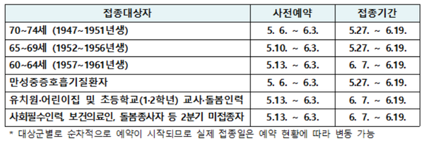- 5/6~ : 만70~74세(47~51년생) 만성 중증 호흡기 질환자 대상