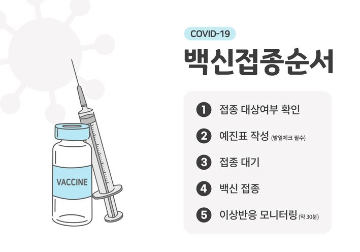 예방접종 전, 질병관리청 문자메시지 안내를 받고, 사전 예약합니다. 발열 등 등 호흡기 증상이 있을 경우 예방접종기관에 알린 후 예방접종 연기하면 됩니다. 위탁의료기관 방문 시에는 마스크를 반드시 착용하고, 예진표를 꼼꼼히 작성해야 합니다. 예방접종 후에는 접종 후 15~30분간 접종기관에서 이상반응 발생 여부를 관찰하고, 귀가 후 최소 3일간 주의 깊게 관찰하는 것이 좋습니다.