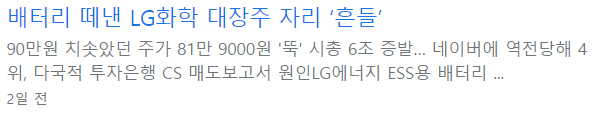 국내 증권사들도 이번 주에 들어서 목표주가를 하향하는 분위기로 바뀌었습니다. 지난주까지만 해도 125만~140만 원대를 유지했던 삼성증권·현대차 증권은 110만 원으로, 유진투자증권은 115만 원으로 목표 주가를 10~22% 내렸습니다. 이날 삼성증권·현대차 증권은 엘지 에너지 솔루션 상장에 따른 지주사 할인 우려를 들어 목표 주가를 내려 잡았고 유진투자증권은 엘지에너지 설루션의 에너지 저장장치(ESS) 배터리 자발적 리콜에 따른 대규모 충당금 발생을 목표주가 하향의 이유로 들었습니다. 한편, 유진투자증권 연구원은 “중국 ESS 배터리 리콜에 따른 일회성 비용 4,000억 원이 2분기 실적에 충당금으로 반영될 것”이라고 말했습니다.